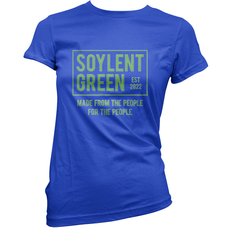 Women's Slim fit T-shirt, our ladies Soylent Green Est 2022 t-shirt is printed on our popular 150 GSM ring spun womens garment. Available in 11 colours and from Size Small to XXL.