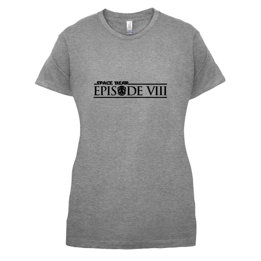 Women's Slim fit T-shirt, our ladies Space Bear Episode 8 t-shirt is printed on our popular 150 GSM ring spun womens garment. Available in 11 colours and from Size Small to XXL.