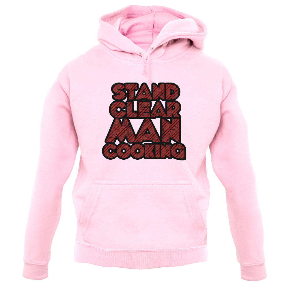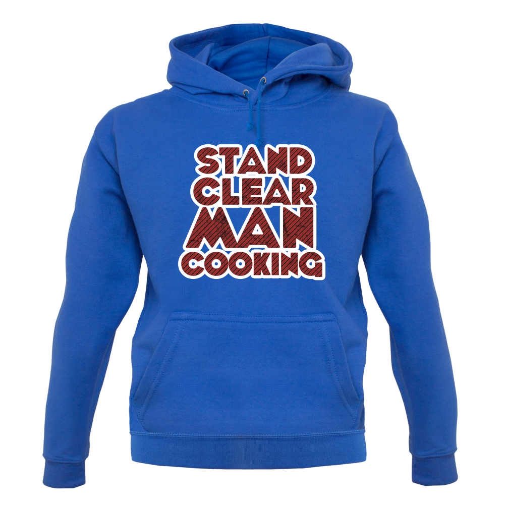 Unisex Hoodie, Our unisex style Stand Clear Man Cooking Hooded top is printed on our 280 GSM kangaroo pocket garment and is Available in 9 Colours and with sizes Small to XXL.