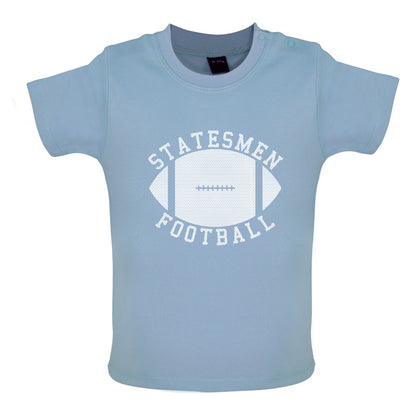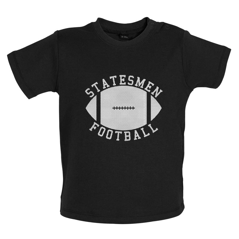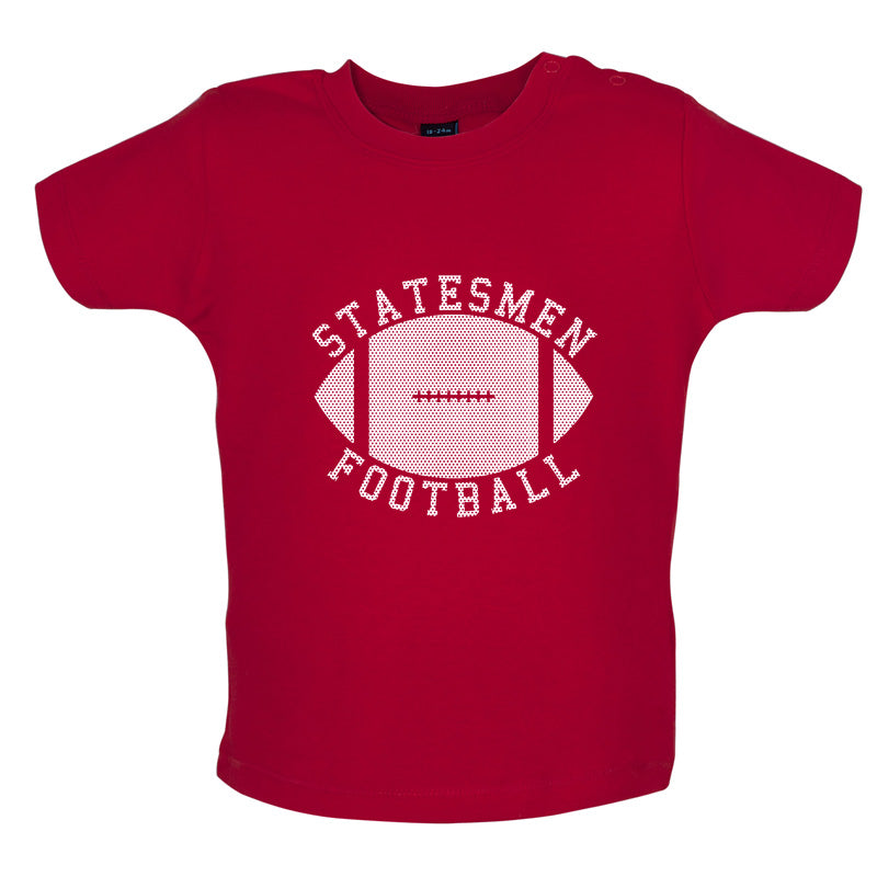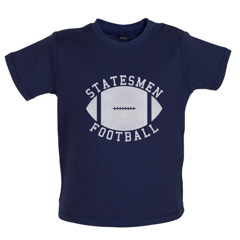 Baby/Toddler T-shirt: Our Baby Unisex style Statesman Football T-shirt is printed on our high quality 200 gsm ringspun cotton garment which features shoulder poppers to ease getting your little one dressed. Our Baby T-shirts are available in a choice of Eight colours.