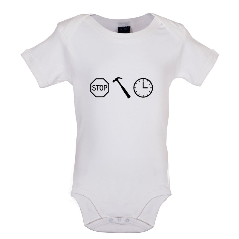 Babygrow/Bodysuit: Our Baby unisex style Stop Hammer Time Babygrow is printed on our 200 GSM short sleeve bodysuit and is available in a choice of 6 different Colours.