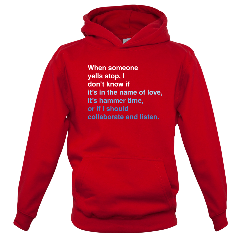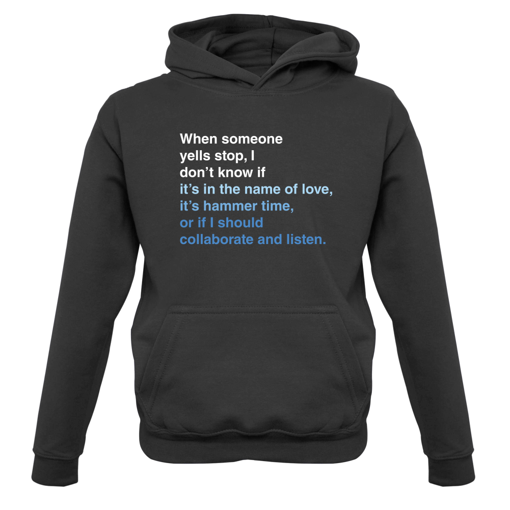 Kids Hoodie: Our kids unisex style STOP Hoodie is printed on our 300 GSM kangaroo pocket hooded top and is available on 7 different Colours.