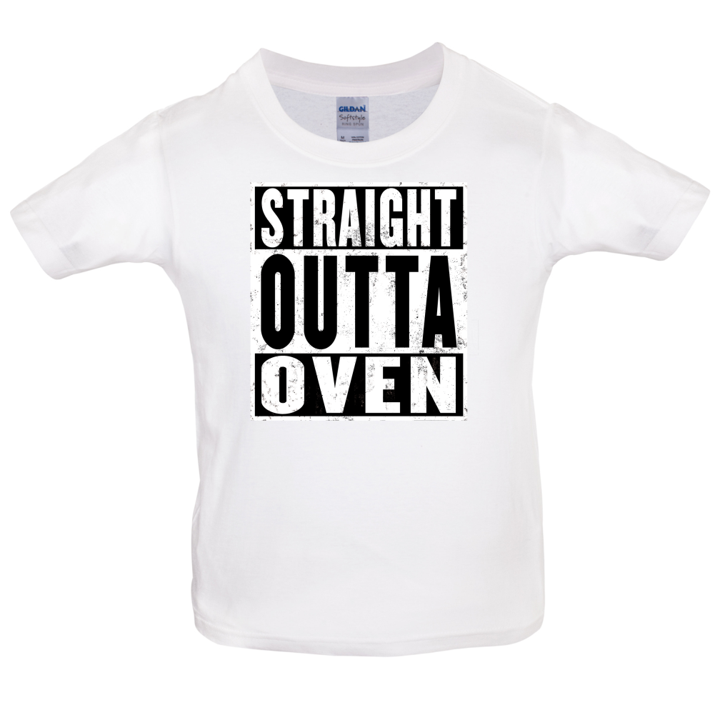 Kids T-shirt: Our Kid's Unisex style Straight Outta Oven T-shirt is printed on our 150 GSM ringspun cotton garment and is available on 8 different colours.