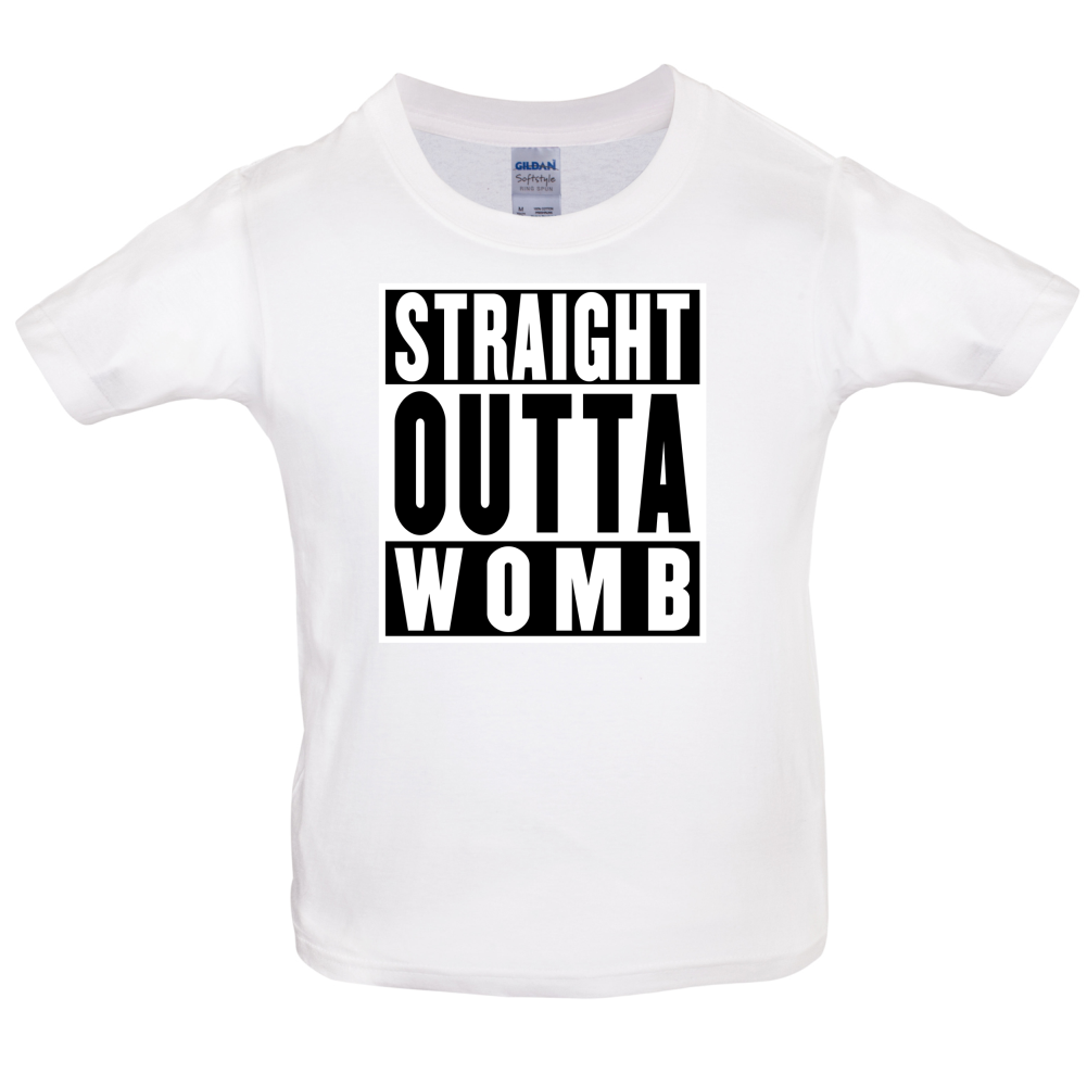 Kids T-shirt: Our Kid's Unisex style Straight Outta Womb T-shirt is printed on our 150 GSM ringspun cotton garment and is available on 8 different colours.