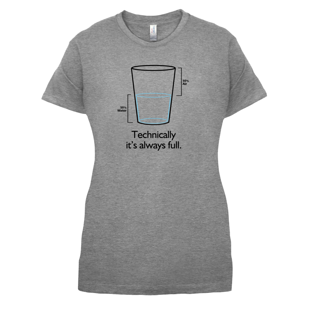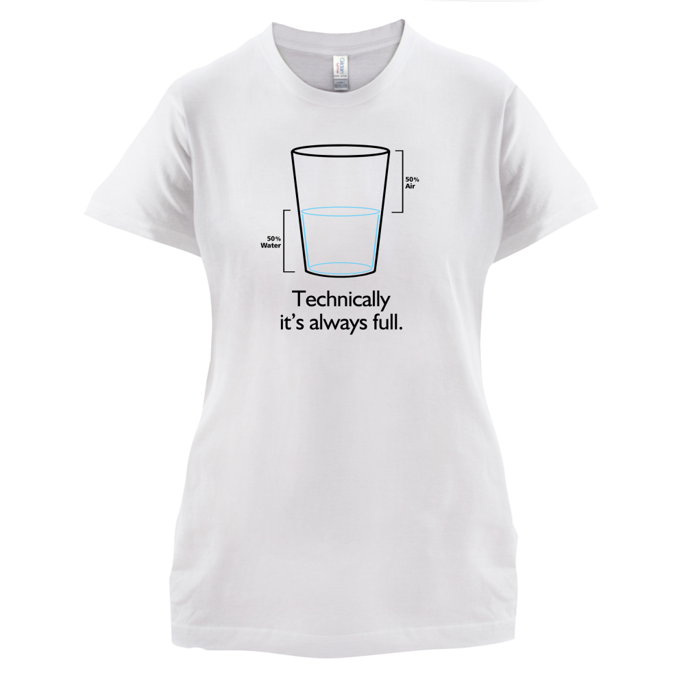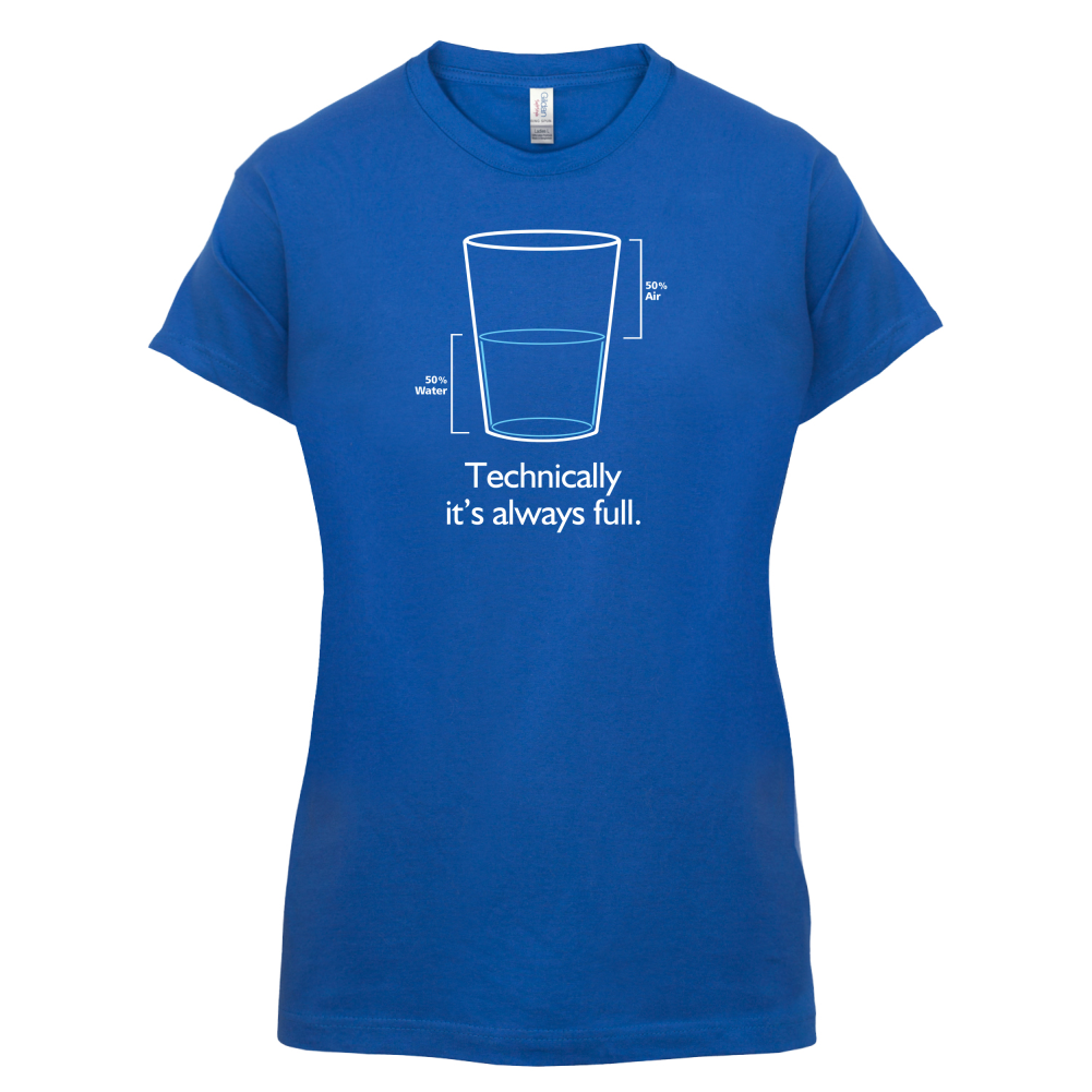 Women's Slim fit T-shirt, our ladies Technically it's Always Full t-shirt is printed on our popular 150 GSM ring spun womens garment. Available in 11 colours and from Size Small to XXL.