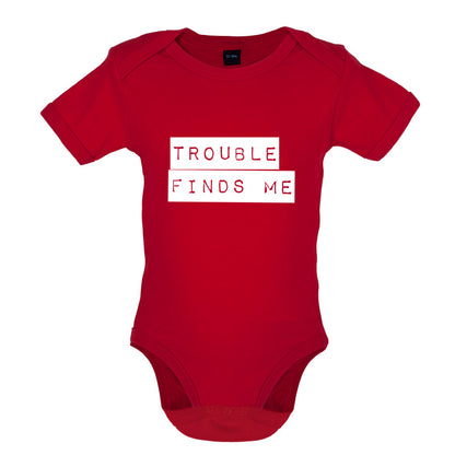 This Trouble Finds Me baby design is available in a choice of garments, use the menu on the right of this page to select your choice of the following: