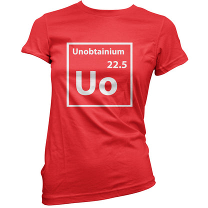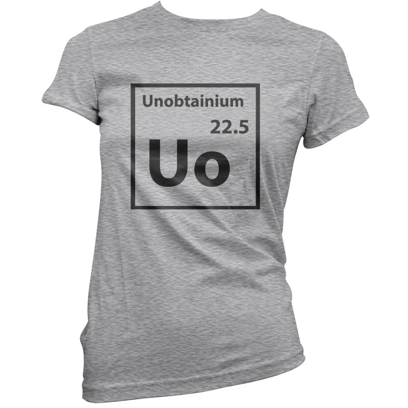Women's Slim fit T-shirt, our ladies Unobtainium (Periodic Table) t-shirt is printed on our popular 150 GSM ring spun womens garment. Available in 11 colours and from Size Small to XXL.