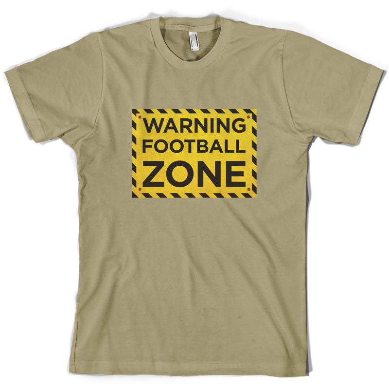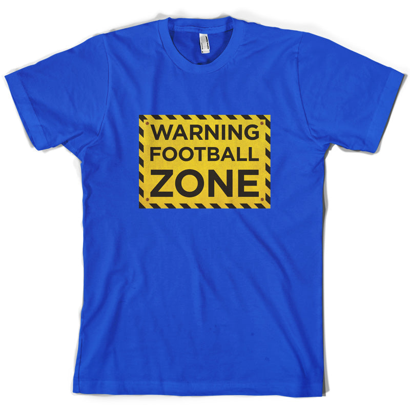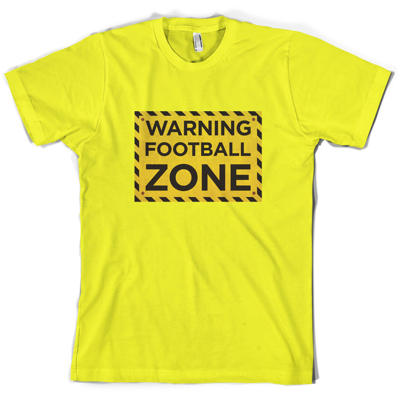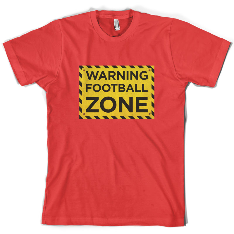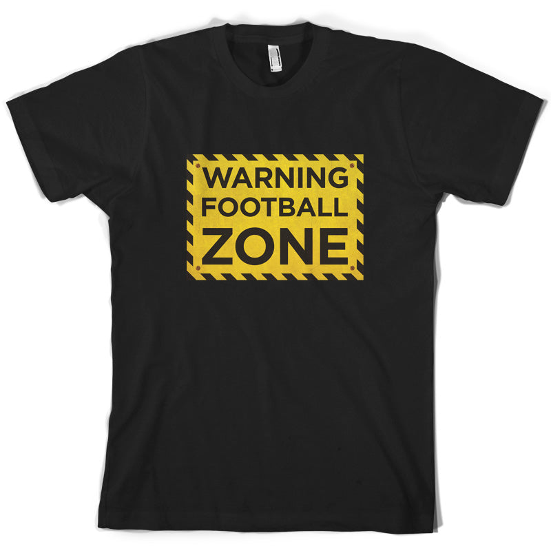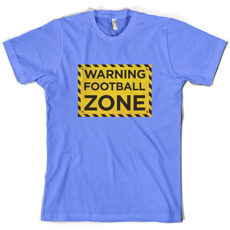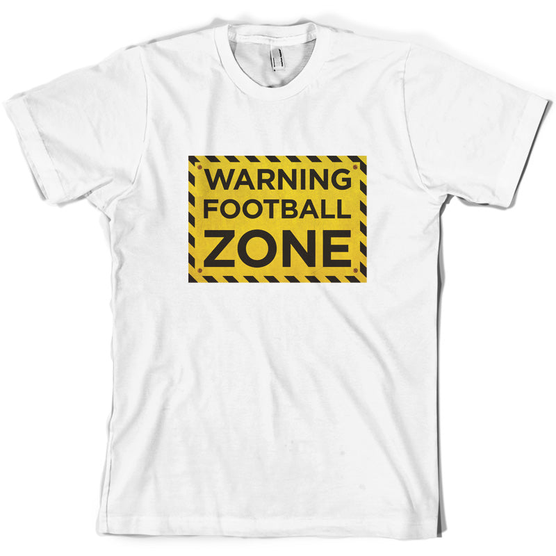 Mens Unisex T-Shirt, our men's Warning Football Zone t shirt is printed onto our premium 190 GSM one piece crew neck t-shirt. Available in 10 Colours and from Size Small to XXL.