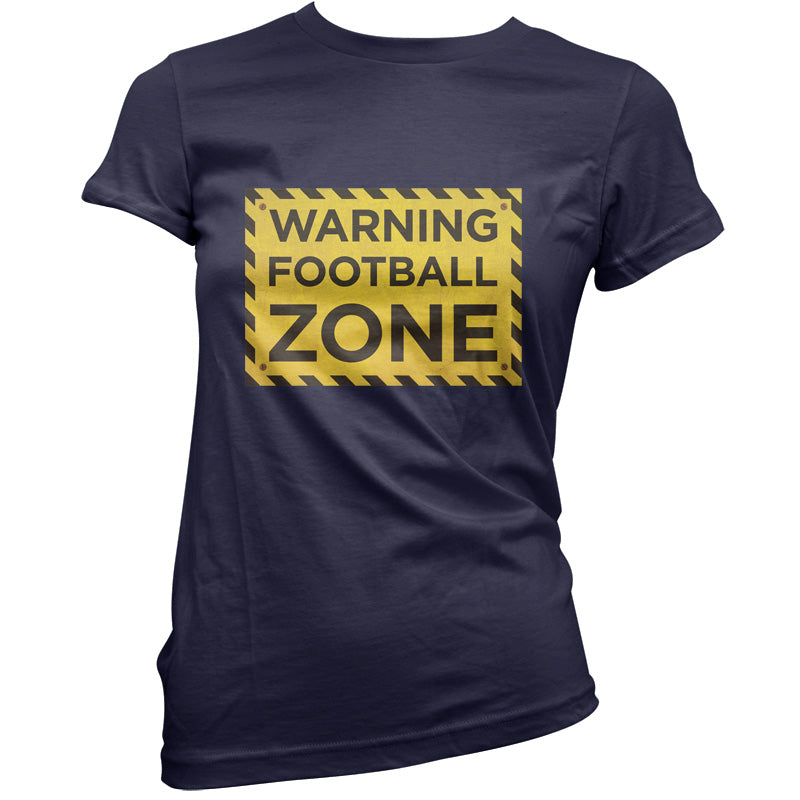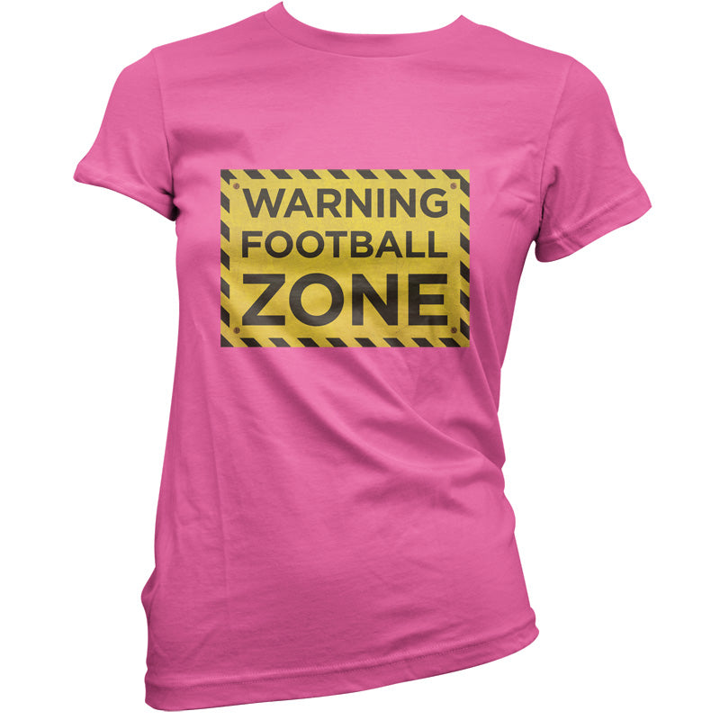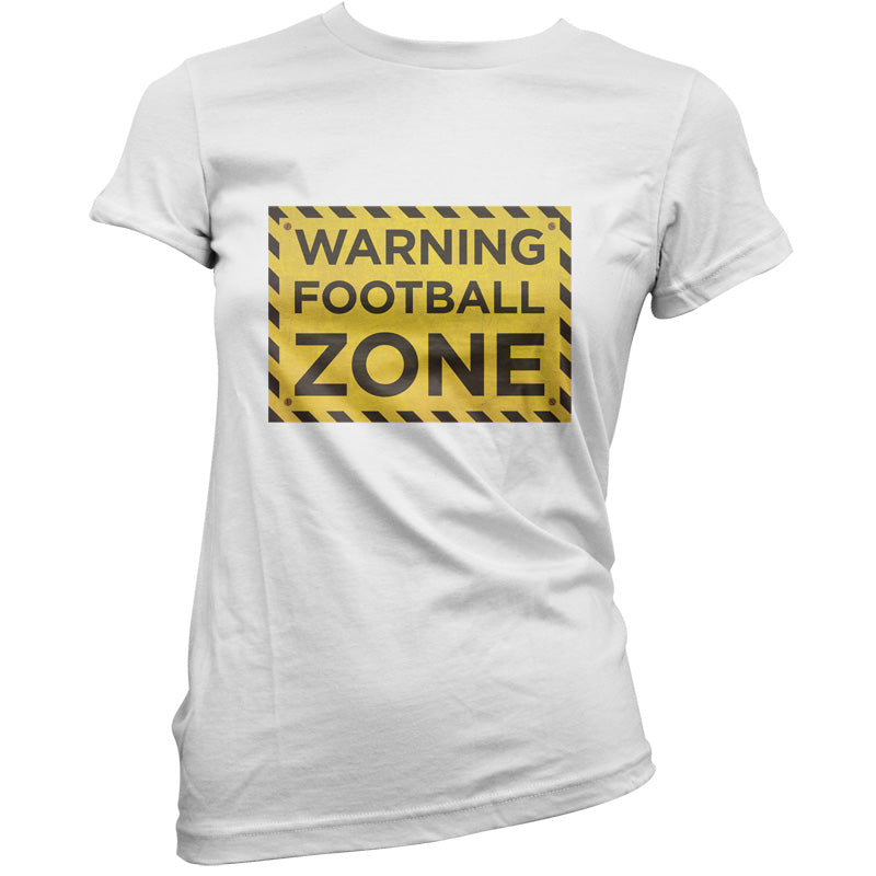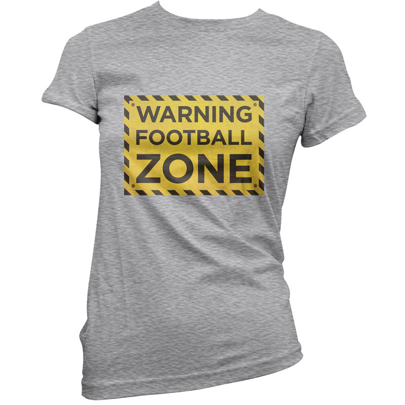 Women's Slim fit T-shirt, our ladies Warning Football Zone t-shirt is printed on our popular 150 GSM ring spun womens garment. Available in 11 colours and from Size Small to XXL.