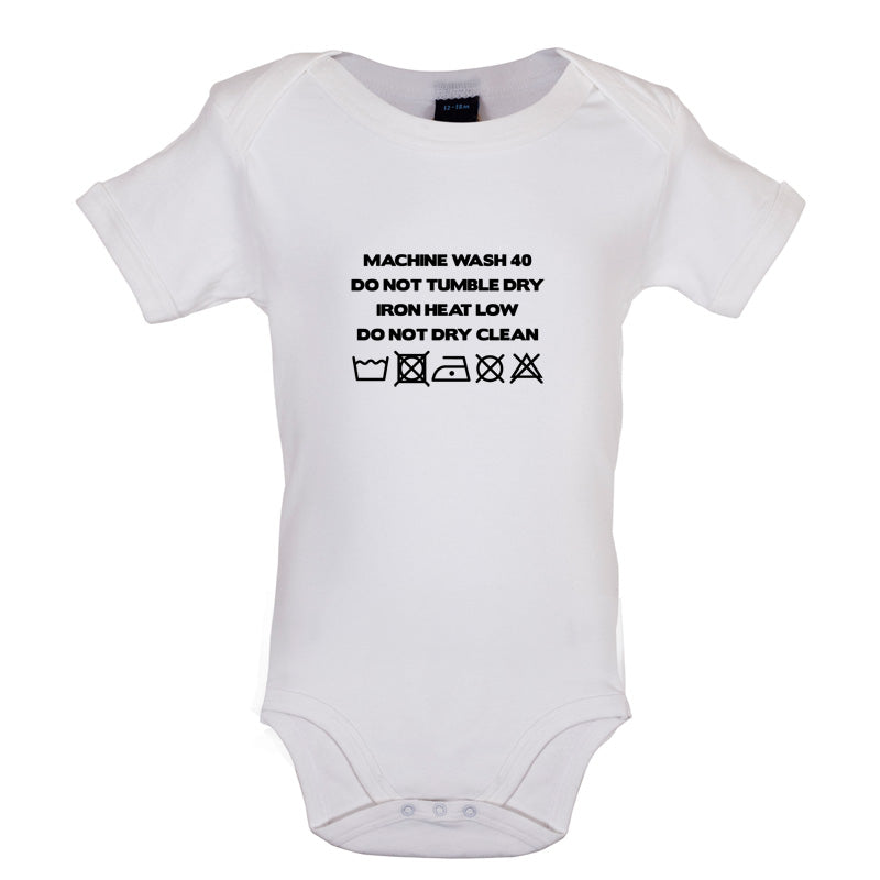Babygrow/Bodysuit: Our Baby unisex style Washing Machine Label Babygrow is printed on our 200 GSM short sleeve bodysuit and is available in a choice of 6 different Colours.