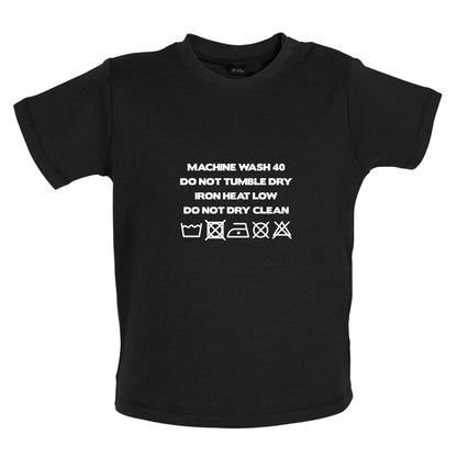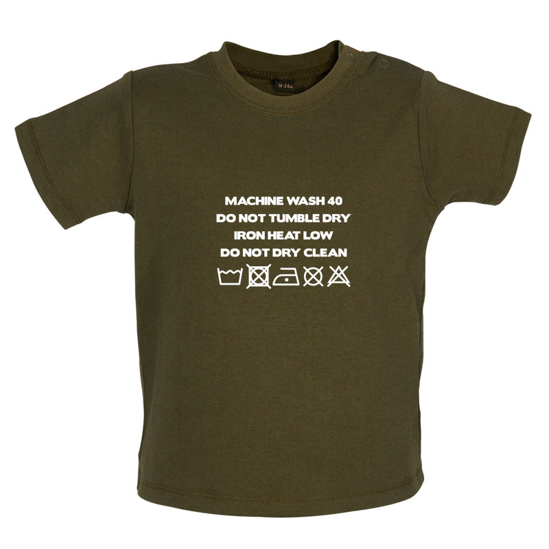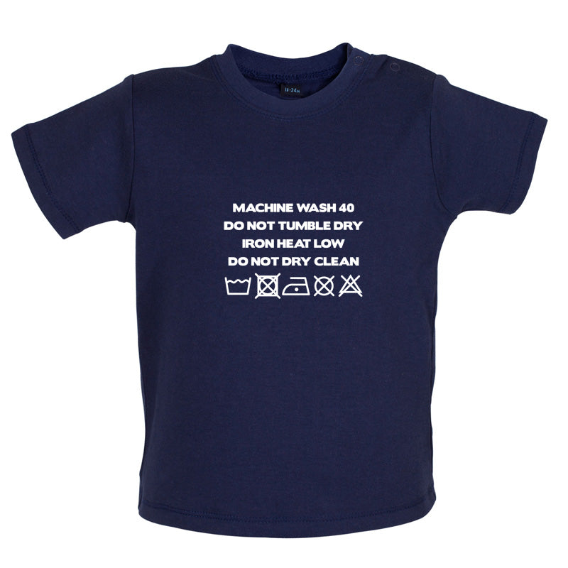 Baby/Toddler T-shirt: Our Baby Unisex style Washing Machine Label T-shirt is printed on our high quality 200 gsm ringspun cotton garment which features shoulder poppers to ease getting your little one dressed. Our Baby T-shirts are available in a choice of Eight colours.