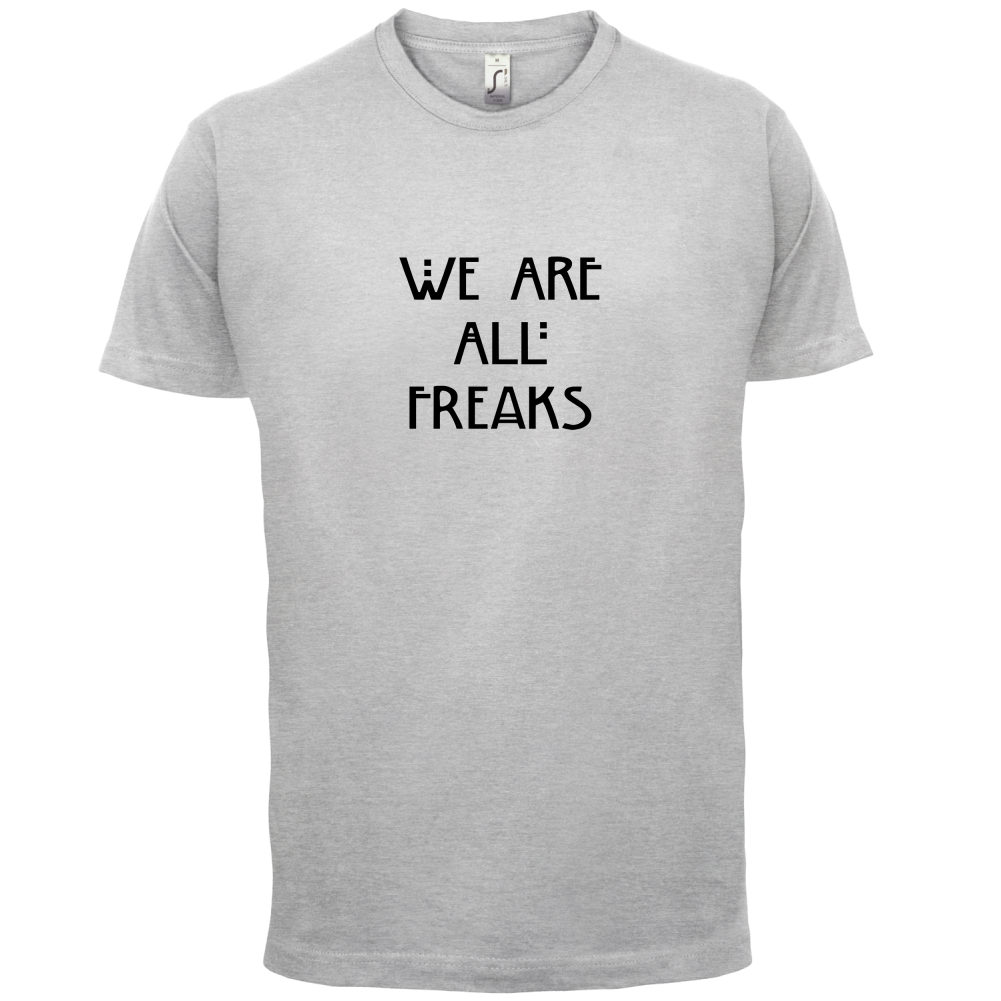 Mens Unisex T-Shirt, our men's We Are All Freaks t shirt is printed onto our premium 190 GSM one piece crew neck t-shirt. Available in 10 Colours and from Size Small to XXL.