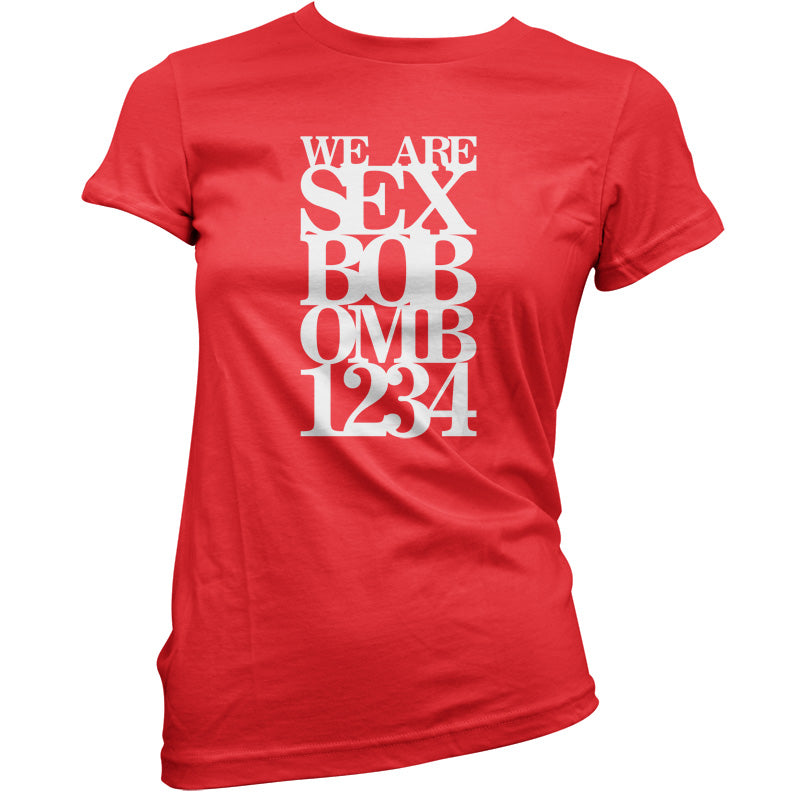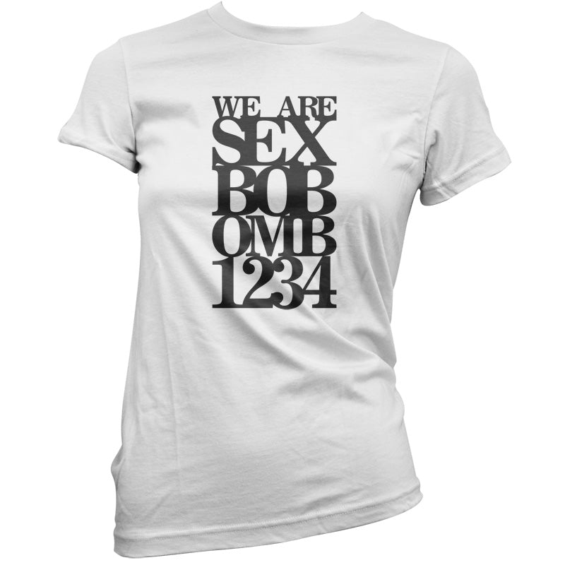 Women's Slim fit T-shirt, our ladies We are Sex Bob-omb 1 2 3 4 t-shirt is printed on our popular 150 GSM ring spun womens garment. Available in 11 colours and from Size Small to XXL.