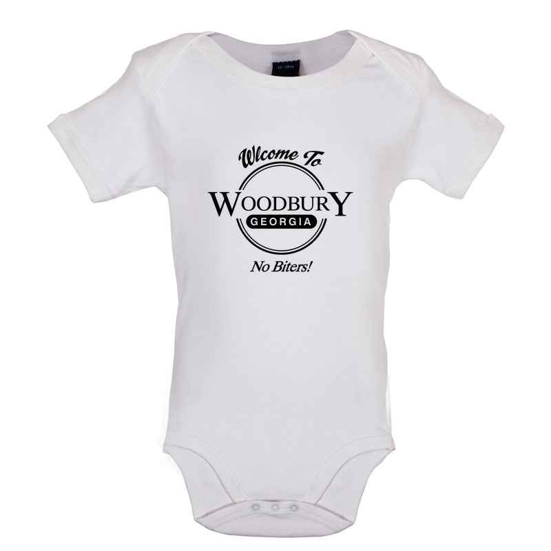 This Welcome To Woodbury Georgia, No Biters! baby design is available in a choice of garments, use the menu on the right of this page to select your choice of the following: