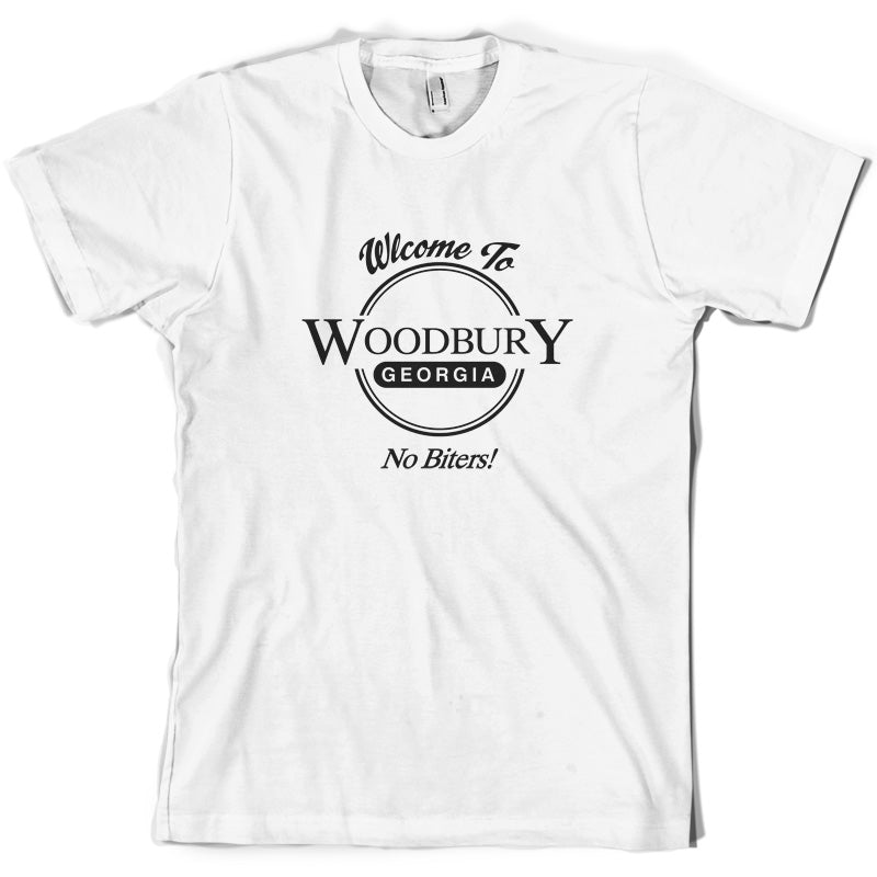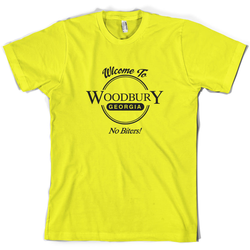 Mens Unisex T-Shirt, our men's Welcome To Woodbury Georgia, No Biters! t shirt is printed onto our premium 190 GSM one piece crew neck t-shirt. Available in 10 Colours and from Size Small to XXL.