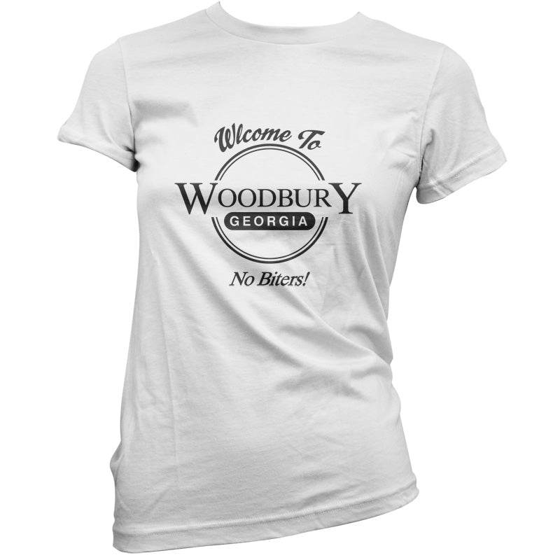 Women's Slim fit T-shirt, our ladies Welcome To Woodbury Georgia, No Biters! t-shirt is printed on our popular 150 GSM ring spun womens garment. Available in 11 colours and from Size Small to XXL.