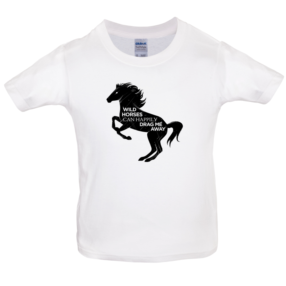 Kids T-shirt: Our Kid's Unisex style Wild Horses Can Drag Me Away T-shirt is printed on our 150 GSM ringspun cotton garment and is available on 8 different colours.