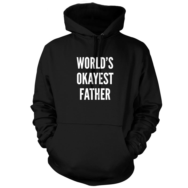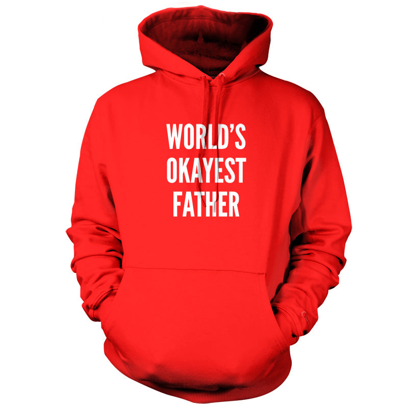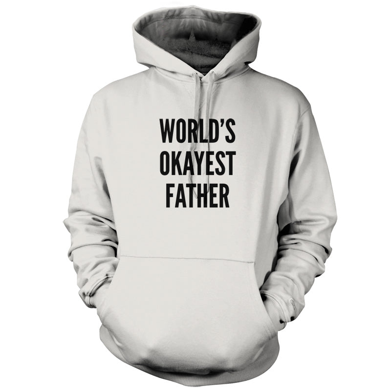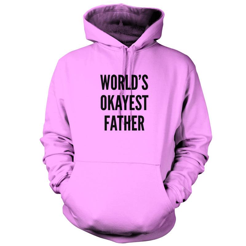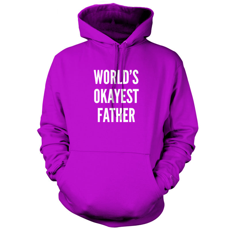 Unisex Hoodie, Our unisex style World's Okayest Father Hooded top is printed on our 280 GSM kangaroo pocket garment and is Available in 9 Colours and with sizes Small to XXL.