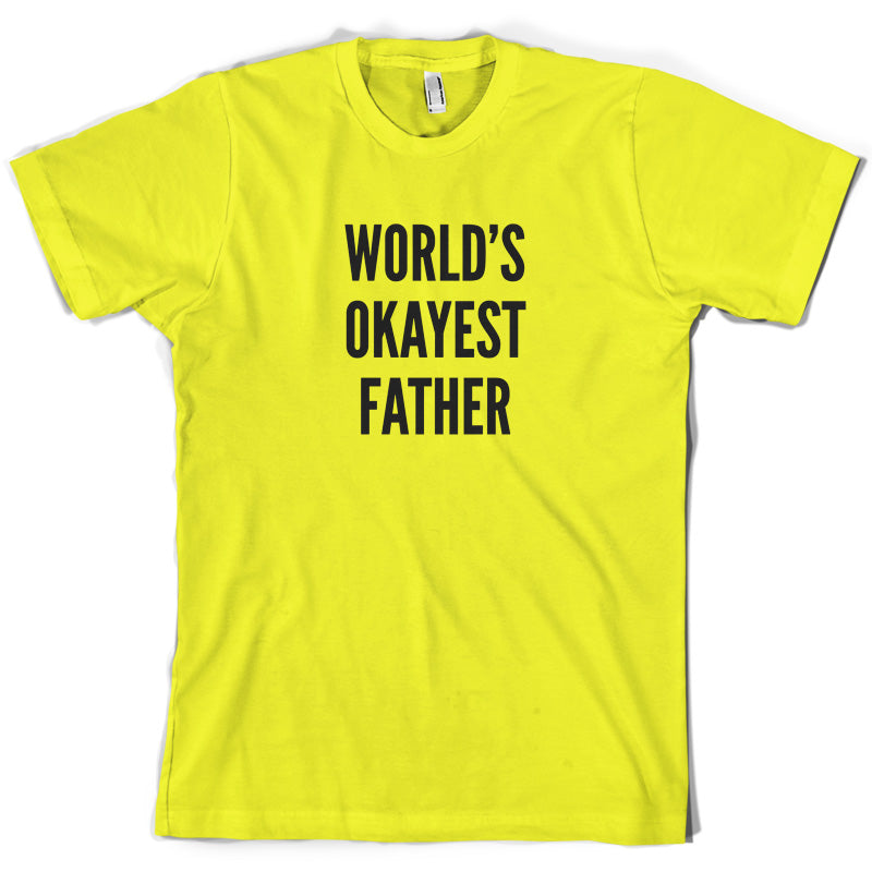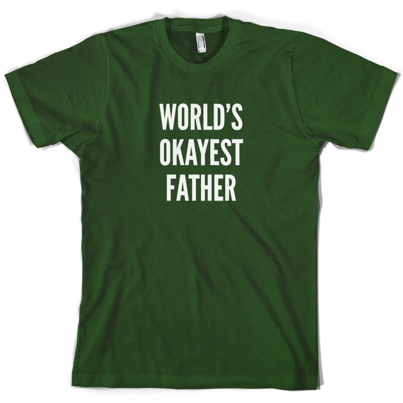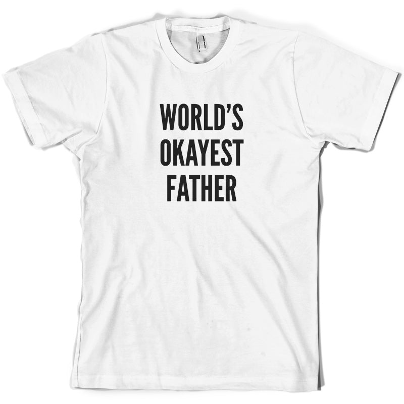 Mens Unisex T-Shirt, our men's World's Okayest Father t shirt is printed onto our premium 190 GSM one piece crew neck t-shirt. Available in 10 Colours and from Size Small to XXL.