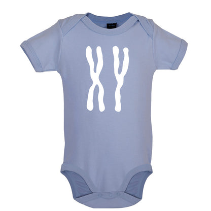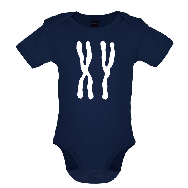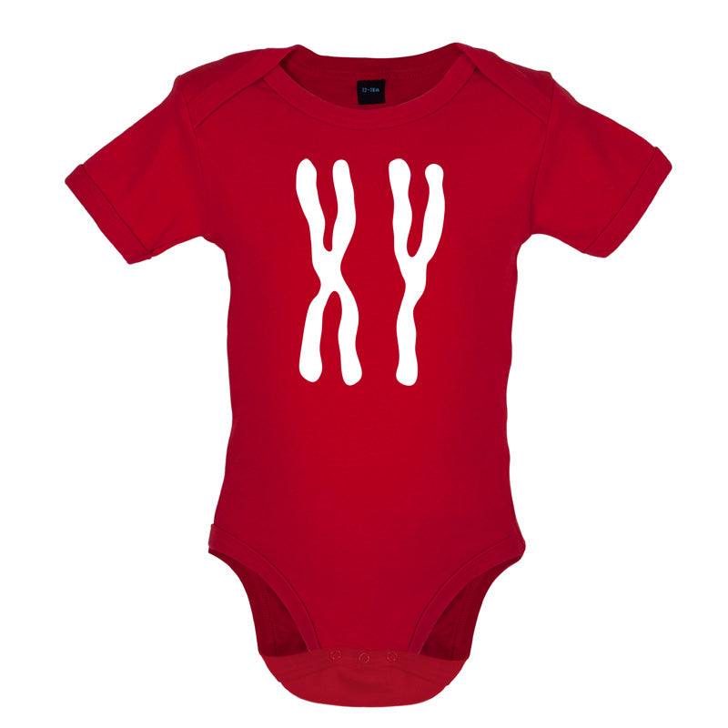 Babygrow/Bodysuit: Our Baby unisex style XY Chromosome Babygrow is printed on our 200 GSM short sleeve bodysuit and is available in a choice of 6 different Colours.