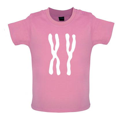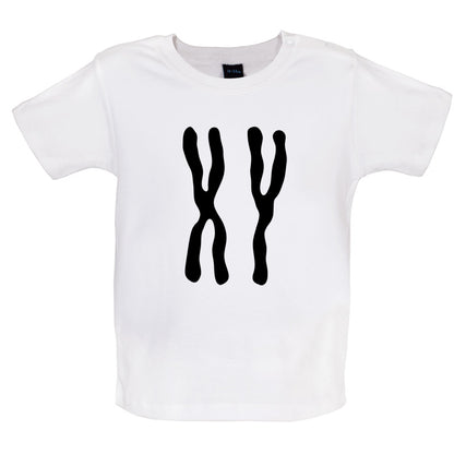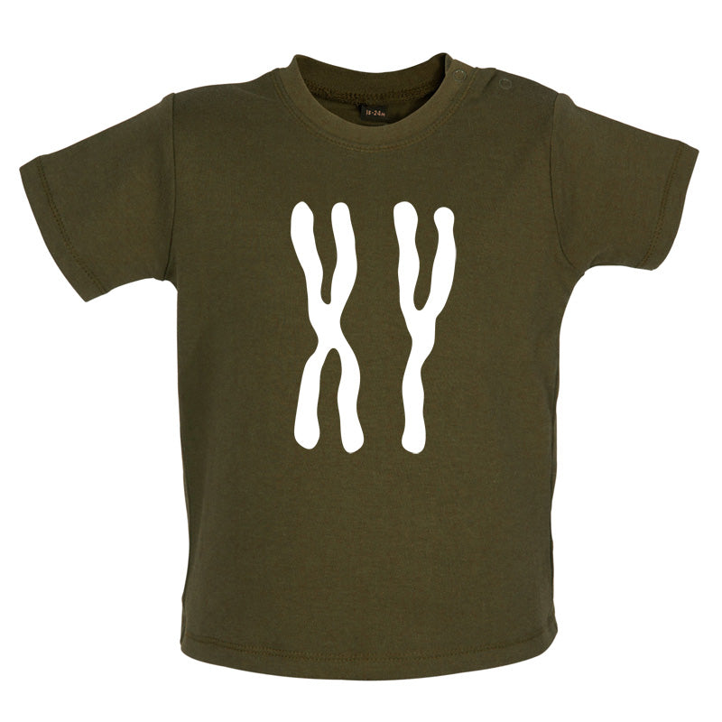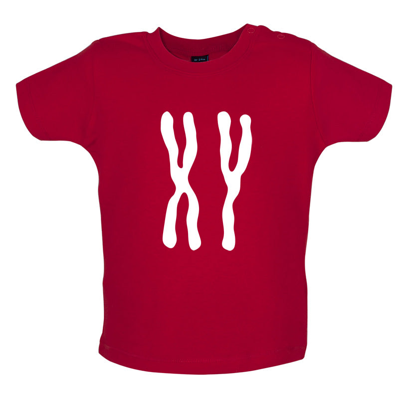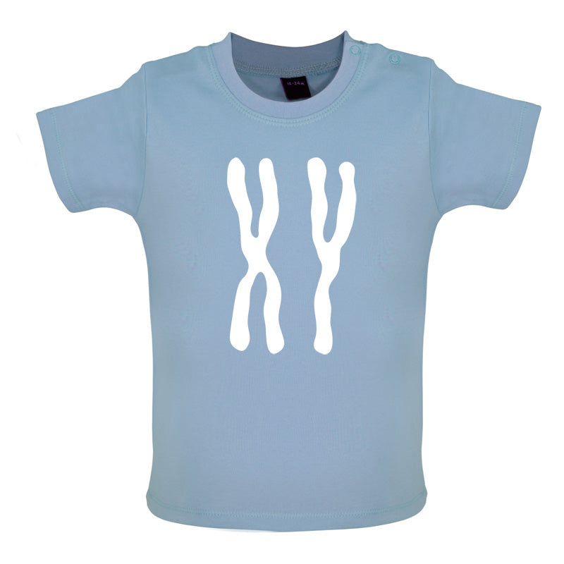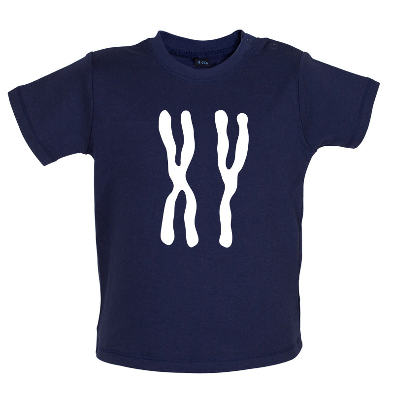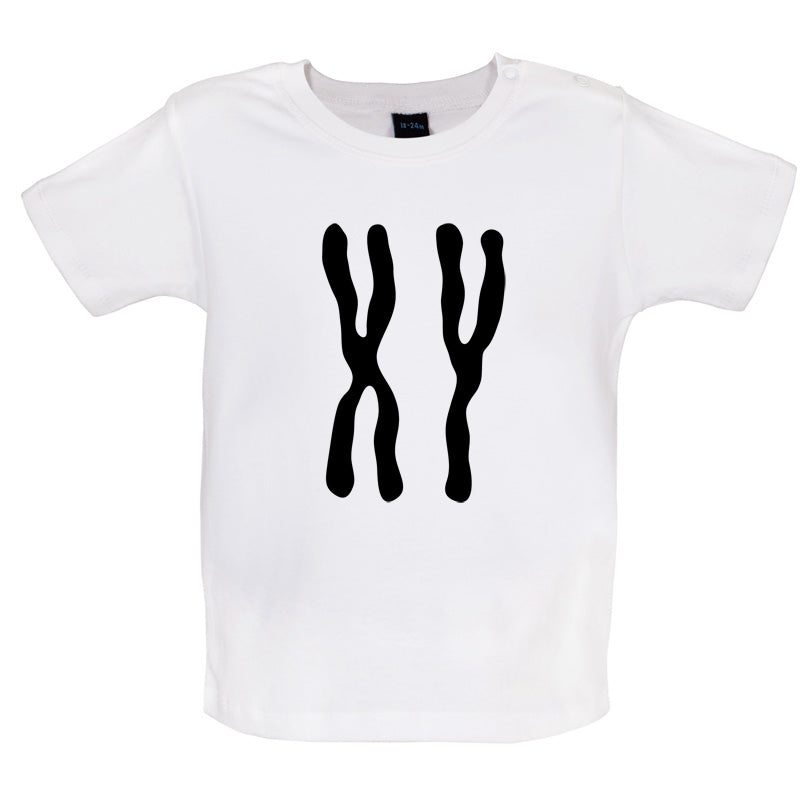 Baby/Toddler T-shirt: Our Baby Unisex style XY Chromosome T-shirt is printed on our high quality 200 gsm ringspun cotton garment which features shoulder poppers to ease getting your little one dressed. Our Baby T-shirts are available in a choice of Eight colours.