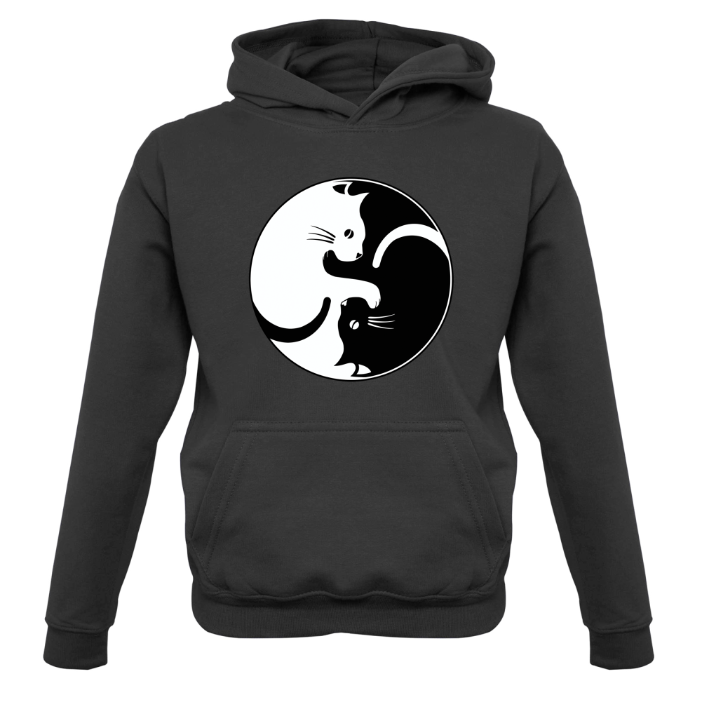 Kids Hoodie: Our kids unisex style Yin Yang Cat Hoodie is printed on our 300 GSM kangaroo pocket hooded top and is available on 7 different Colours.