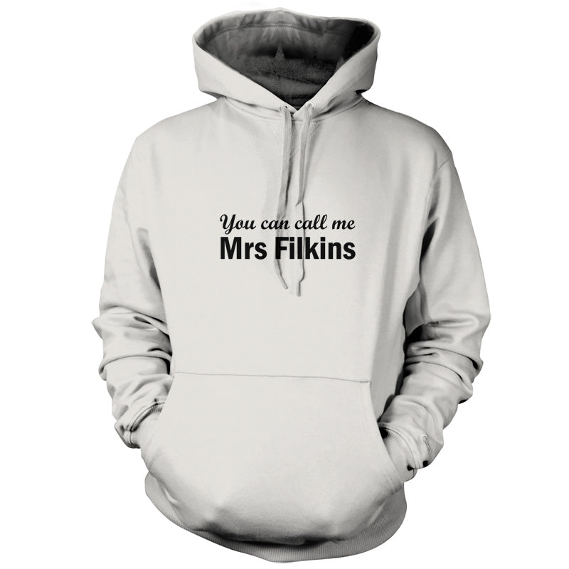 Unisex Hoodie, Our unisex style You Can Call Me Mrs Filkins Hooded top is printed on our 280 GSM kangaroo pocket garment and is Available in 9 Colours and with sizes Small to XXL.